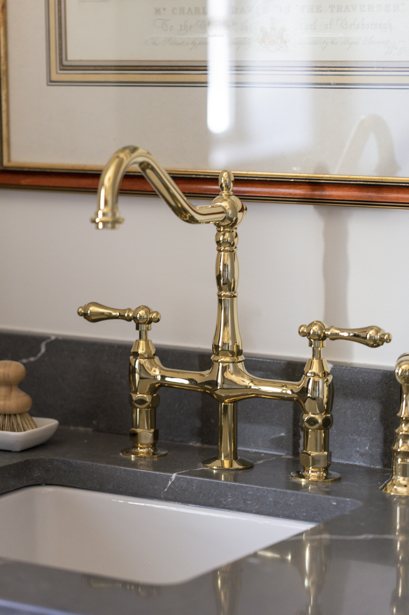 We originally had a dog wash right off of the door as you came in from the garage, and while I would make any excuse to include the pups in my design, after it was built it just didn’t feel right. I felt like there needed to be a place to drop your mail, your keys, a little more of a countertop use. So we pivoted quickly and I designed this vignette that I am so happy with. I kept going back and forth about whether or not I was doing the right thing with the change but the second I saw it, I knew. We nailed it.