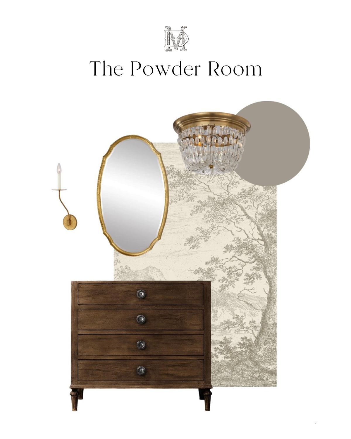 Because this is such a small house I was able to get my head around the designs rather quickly, and put them together even quicker! I’m still working through details and specifics but we’re on the right track and I’m really excited about the direction it’s taking. After starting with the exterior, we’re going “elevated luxury cottage” throughout the interior. I was concerned in the beginning with our small budget but to be honest with a few small touches here and there we’re going to be able to make a big impact when it comes to the finishes. And two of those spaces that I’m excited about already are the powder room and the primary bathroom. I had this dream of the powder bathroom that I think is going to be a game-changer!